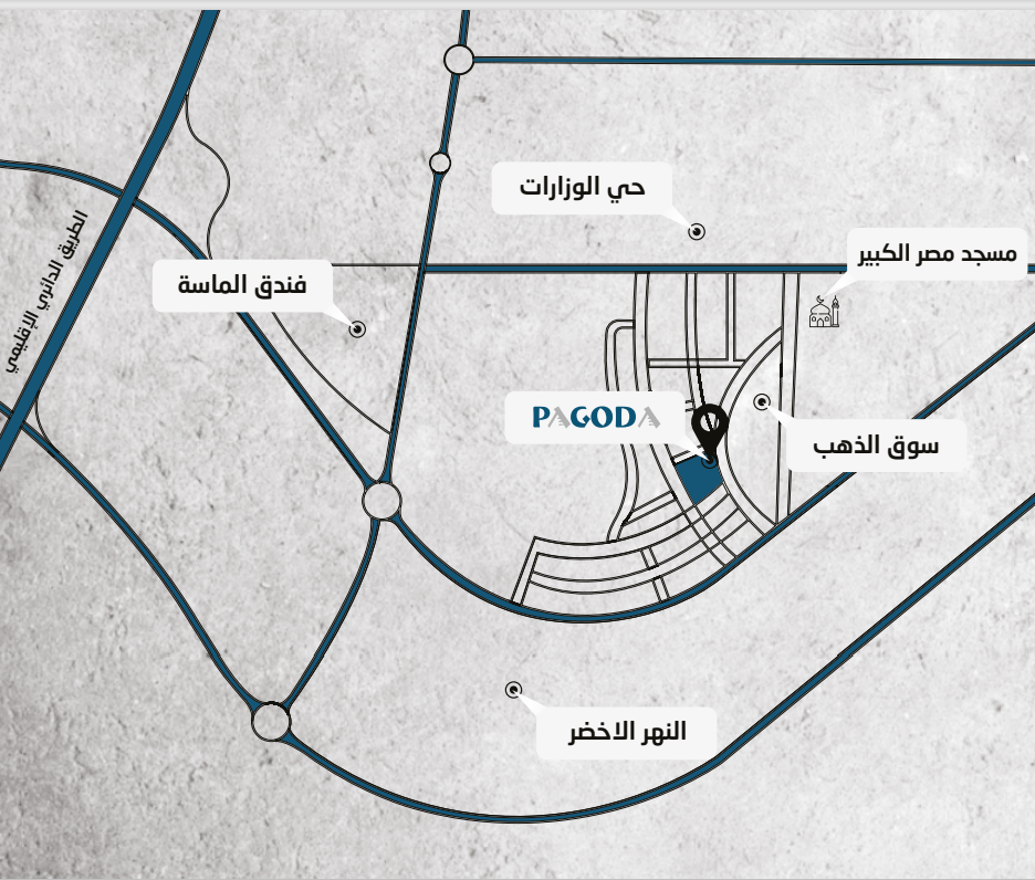 يقع المول في موقع متميز في اميز قطعة ارض في منطقة الداون تاون بالعاصمة الادارية الجديدة أمام سوق الذهب فهو